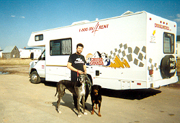 Chris Stobbart (Support Person/Driver) drove the RV that is accompanied Lori on her Trek. He also supported her by providing for her nutritional and medical needs. Several volunteers in British Columbia also supported Lori by providing much needed publicity and other management. And of course, my two faithful canine companions, Rancho (a Rottweiler)and Candy (a Great Dane), have been walking by my side through it all, and continued to do so throughout the Trek.