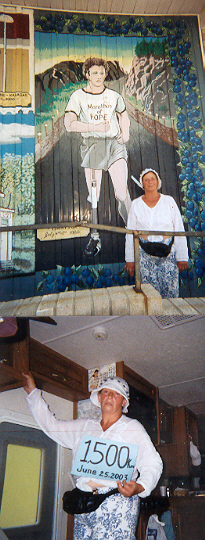 Lori has a Moment with Terry Fox at the Kaladar Community Centre; June 25 - 1500 KM!